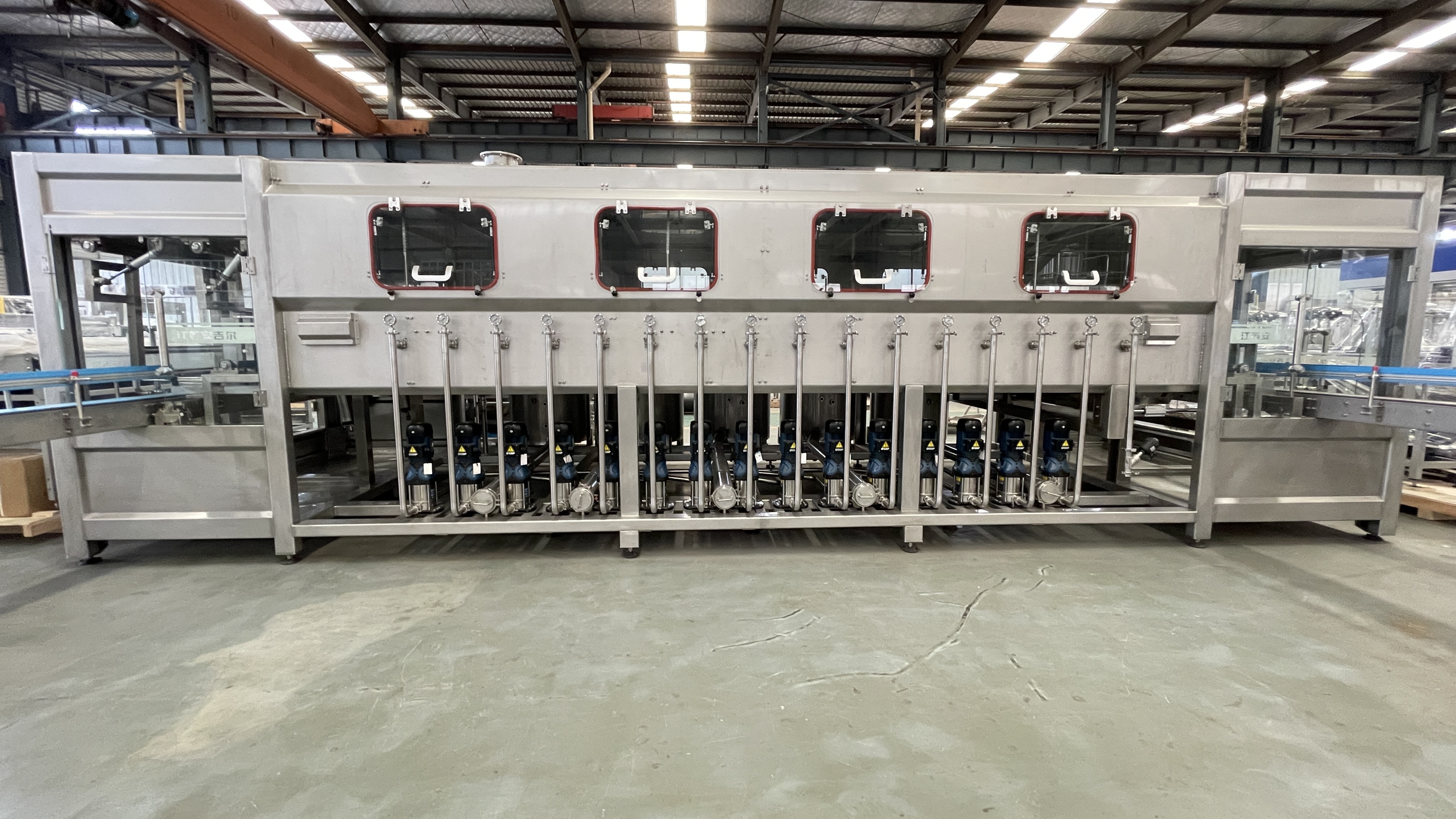 該設(shè)備集自動拔蓋、自動外刷桶、自動上瓶機構(gòu)、自動洗瓶消毒、自動灌裝、自動套蓋、自動壓蓋和燈檢、熱縮膜、提桶套袋、成品送出為一體,使用的原材料符合食品行業(yè)和其他行業(yè)要求。該設(shè)備采用AC380V電源.