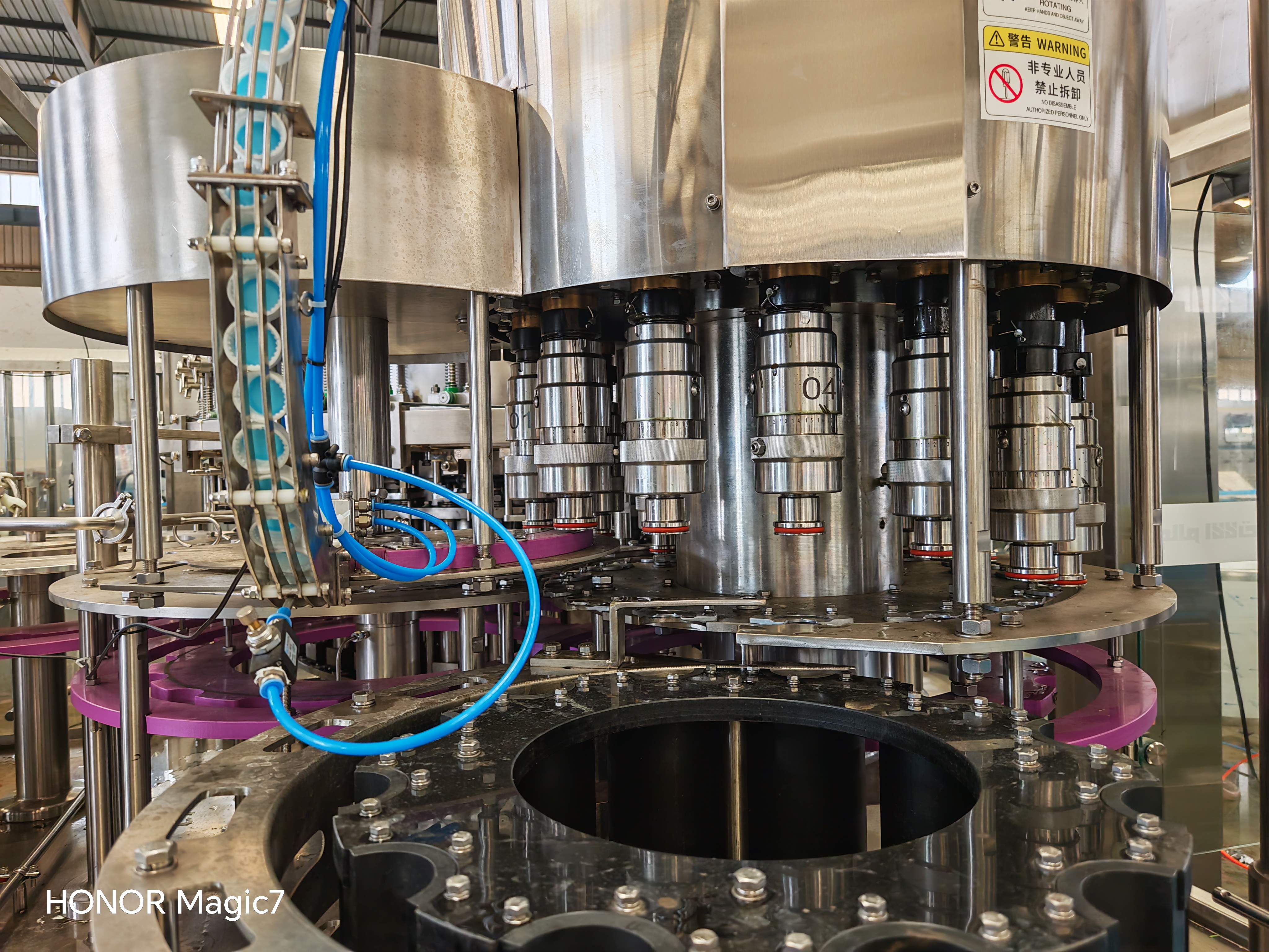 含氣飲料灌裝生產(chǎn)線配有CO2壓力控制精確,液位控制穩(wěn)定;設(shè)有多處卡瓶、缺瓶、缺蓋、過載等保護(hù)報(bào)警裝置,確保出品質(zhì)量。