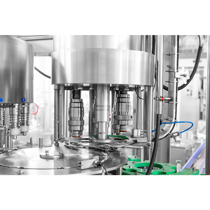 XGF14-12-5三合一灌裝機主要用于礦泉水、純凈水的灌裝作業(yè)。本機將沖洗、灌裝、旋蓋三功能合在一個機體上,全過程實現(xiàn)自動化。適用于聚酯瓶、塑料瓶,各部分的適用瓶型調(diào)整采用手柄轉動實現(xiàn),輕松自如,簡便快捷。灌裝方式采用了新型的常壓灌裝,使灌裝速度更快更穩(wěn)定,所以與同規(guī)格的機器相比本機的產(chǎn) 量更高,效益更大。本機采用了先進的可編程控制器(PLC)控制機器的自動運行,進瓶鏈道采用變頻器調(diào)整,與主機變頻器相互配合使進瓶運行更穩(wěn)定可靠,光電檢測各部件的運行狀況。自動化程度高,操作簡便。是礦泉水、純凈水生產(chǎn)廠家理想的首先設備。
